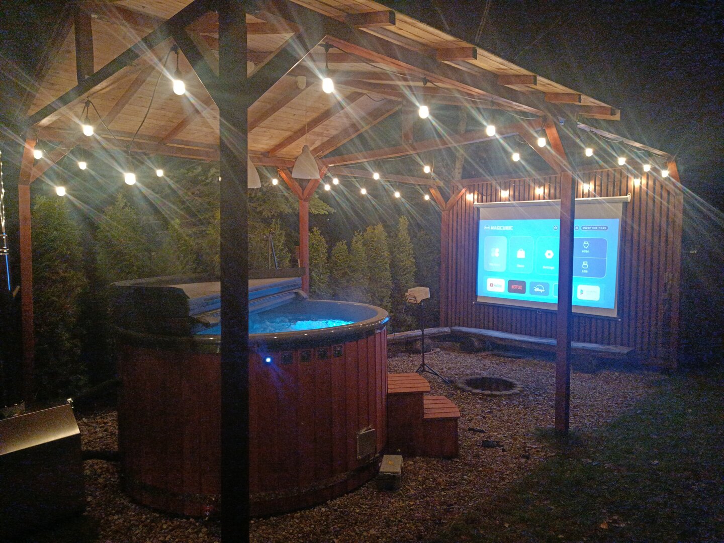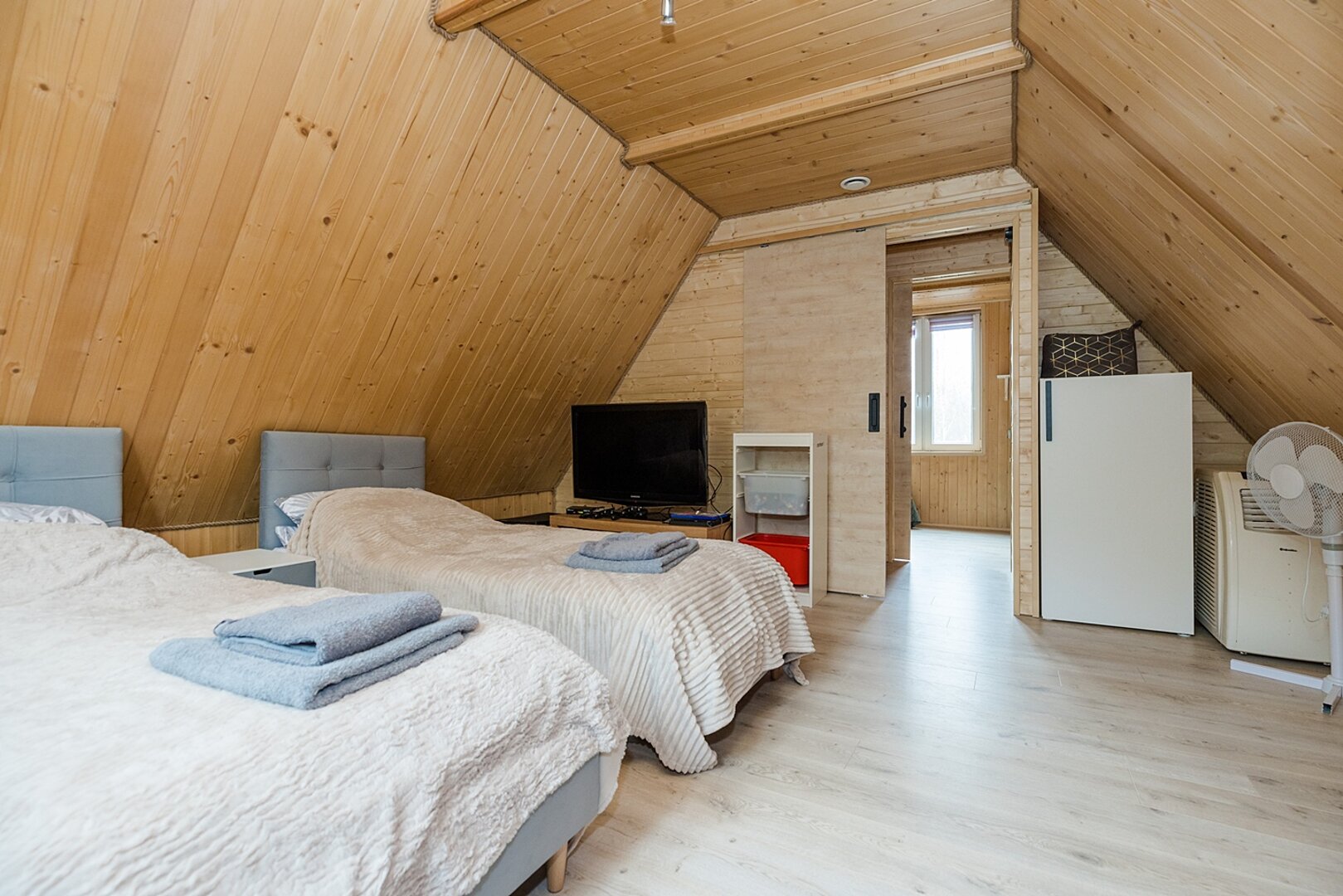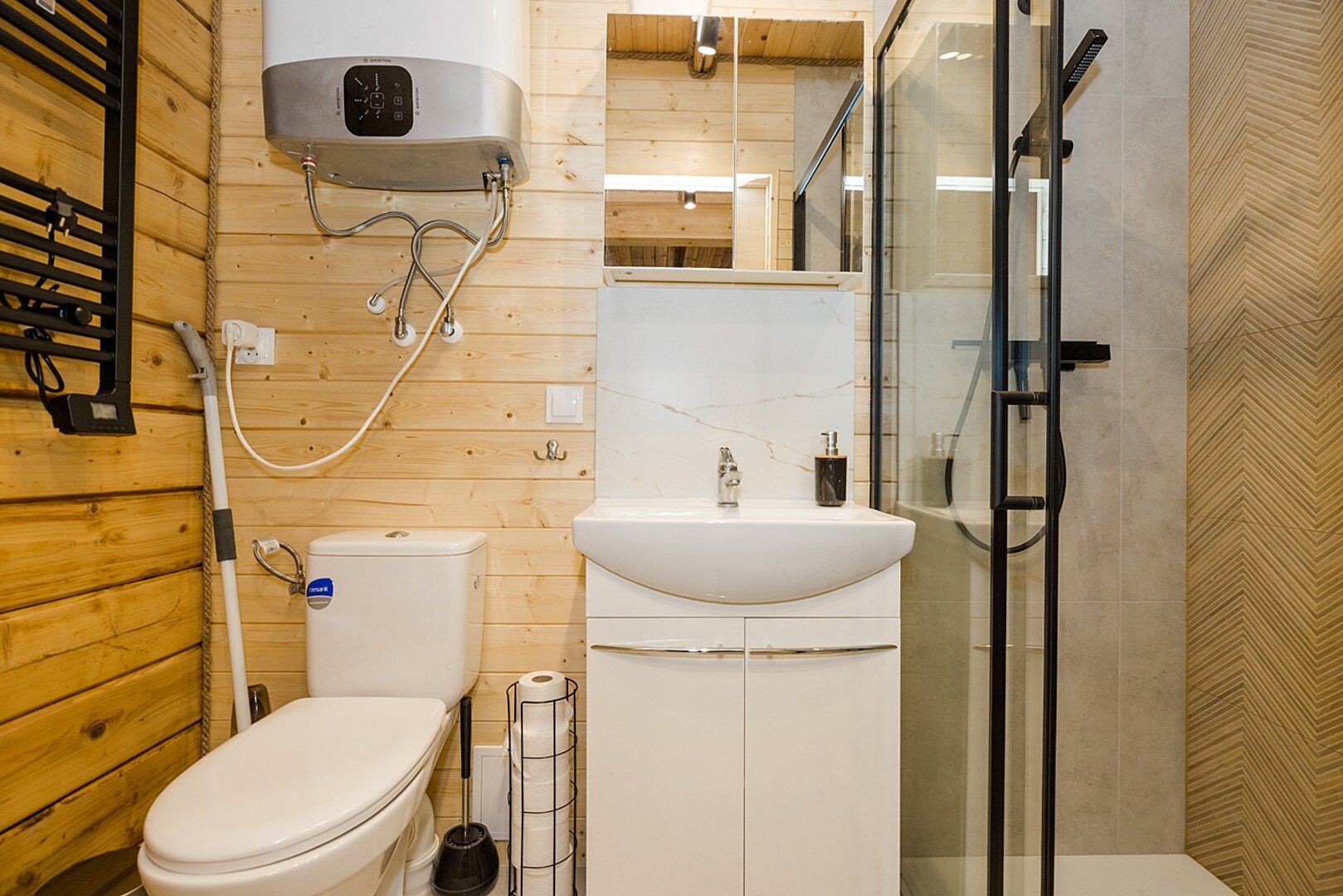 Domek mieści do 6 osób i oferuje przytulny salon z aneksem kuchennym, łazienkę z prysznicem oraz dwie sypialnie na poddaszu. Na gości czeka zadaszony taras, grill gazowy oraz miejsce na ognisko. Obiekt jest w pełni wyposażony – posiada klimatyzację, ogrzewanie podłogowe, Wi-Fi i prywatny parking.