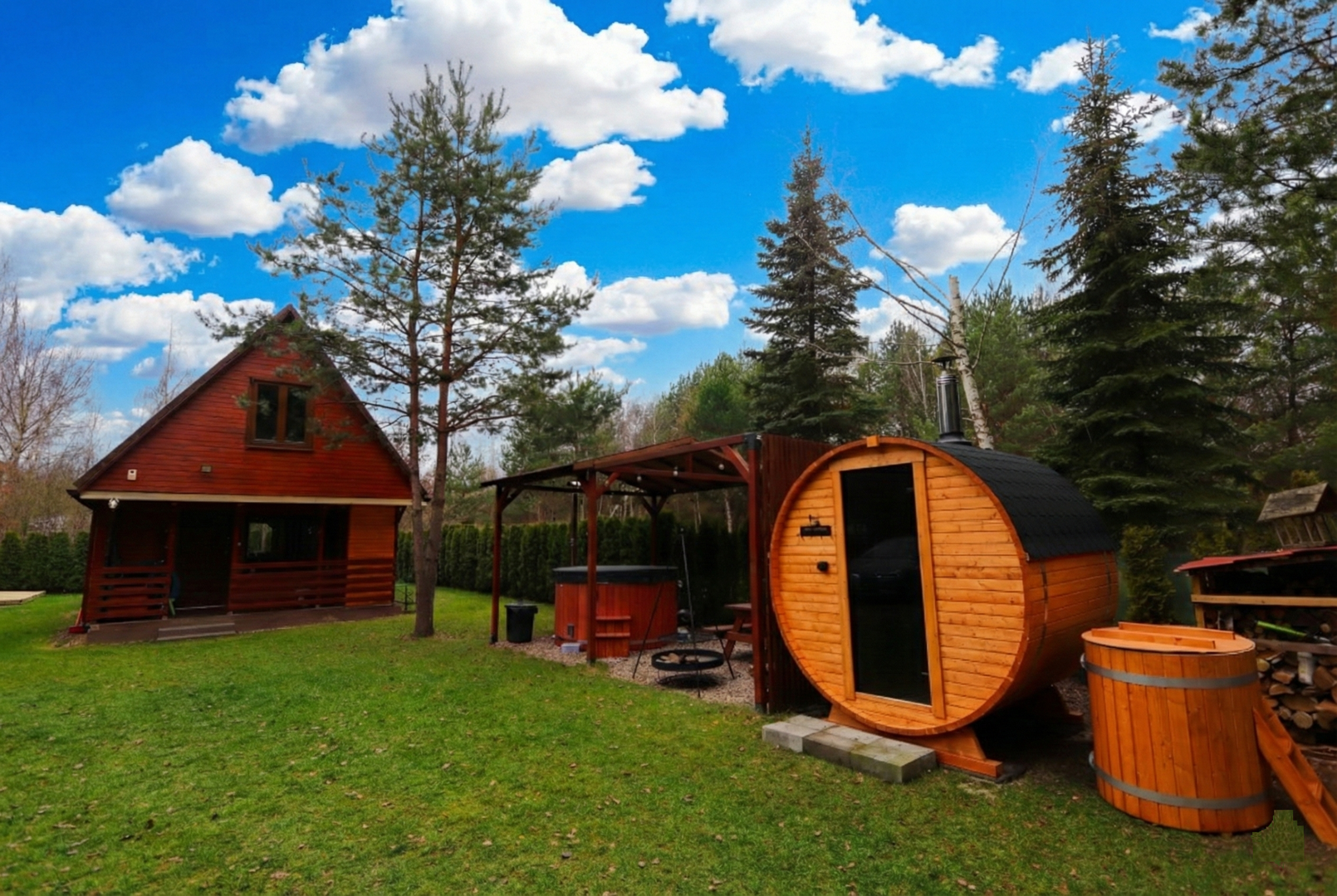 Całoroczny drewniany domek przy lesie