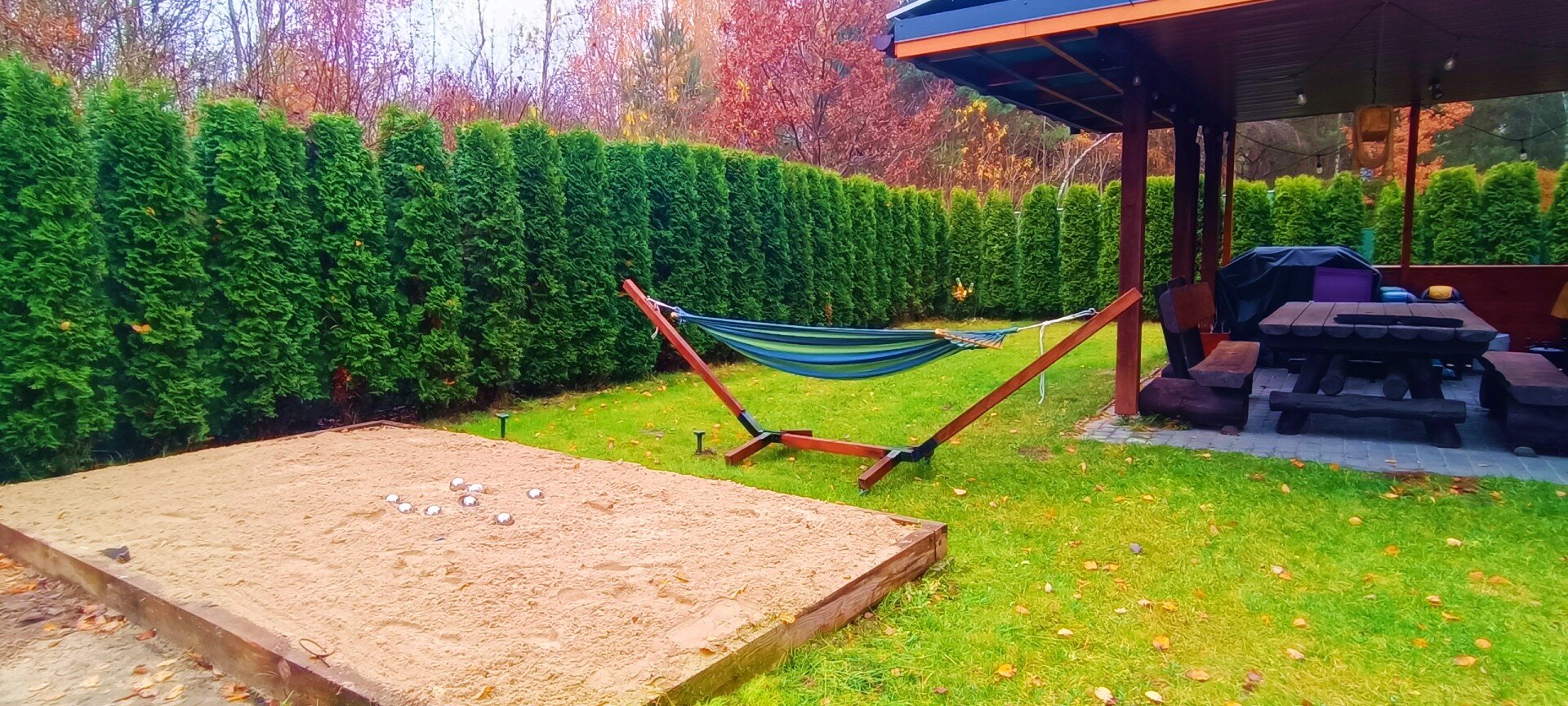 Domek znajduje się w otoczeniu Chojnowskich Lasów, z bezpośrednim dostępem do tras spacerowych i rowerowych. Teren jest ogrodzony (1000 m²), zapewniając pełną prywatność i bezpieczeństwo.