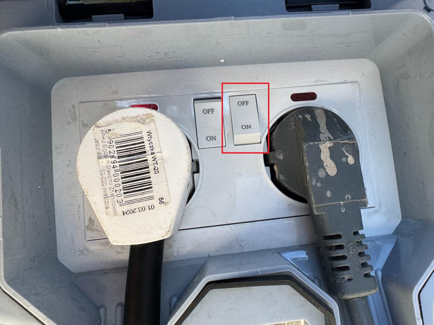 zmień ustawienie włącznika na pozycję ON przy wtyczce znajdującą się po prawej stronie.